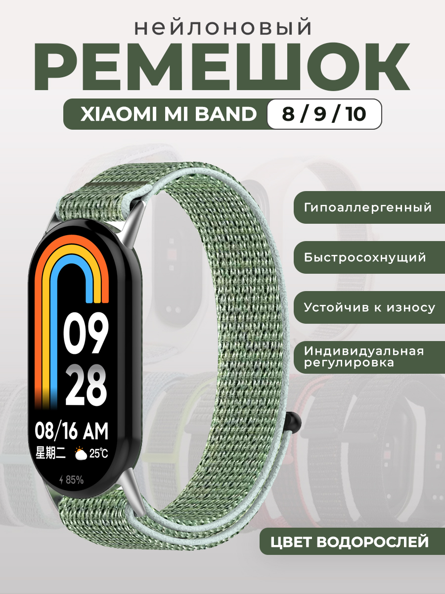 Нейлоновый ремешок для Xiaomi Mi Band 8/9/10, на липучке, цвет водорослей