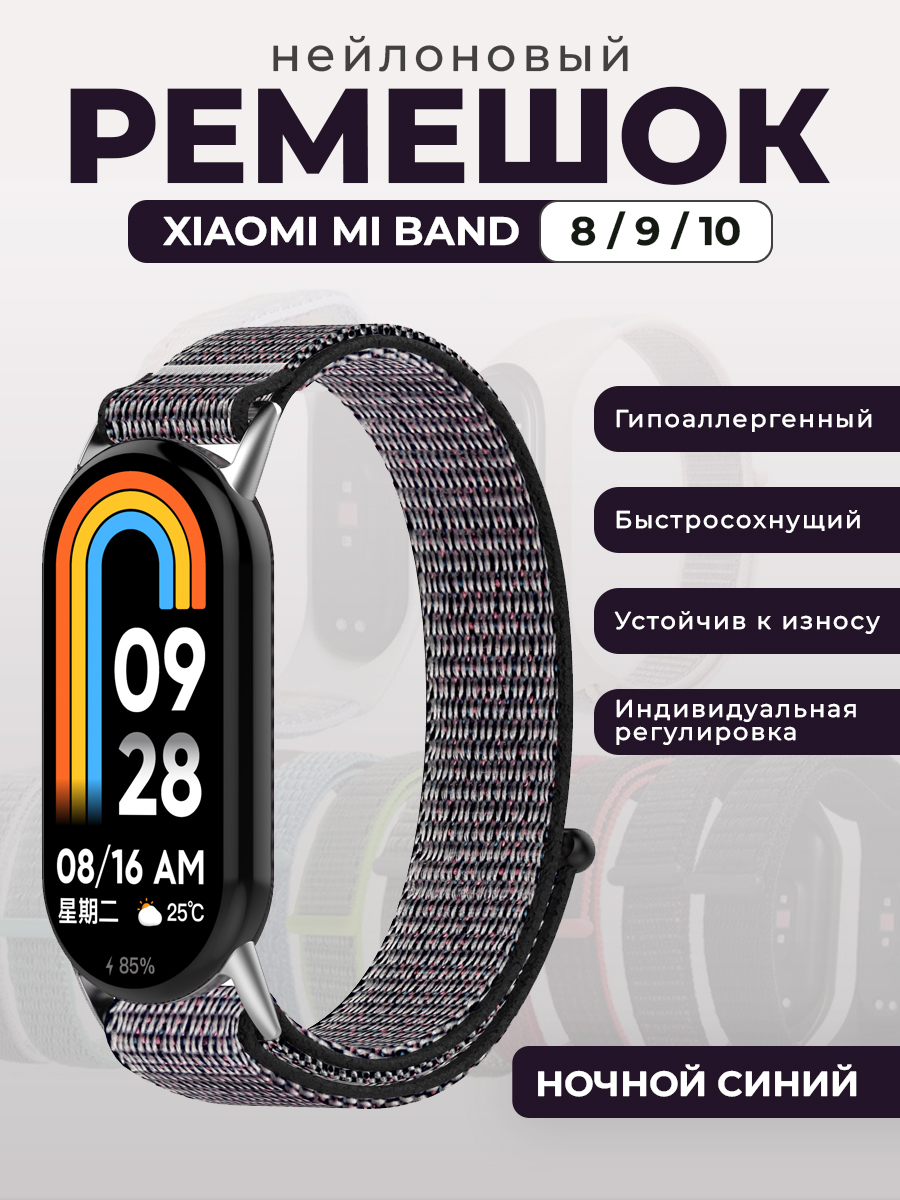 Нейлоновый ремешок для Xiaomi Mi Band 8/9/10, на липучке, ночной синий