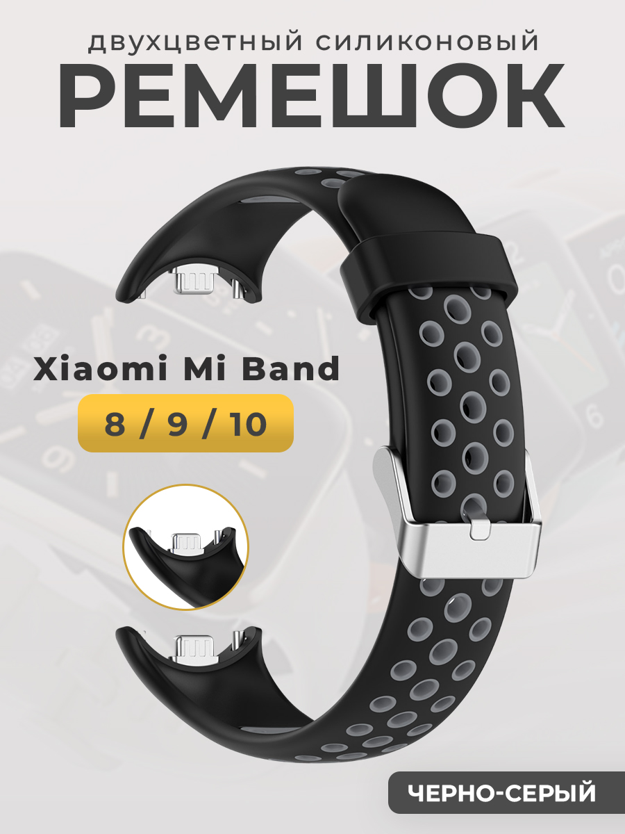 Двухцветный силиконовый ремешок для Xiaomi Mi Band 8/9/10, черно-серый