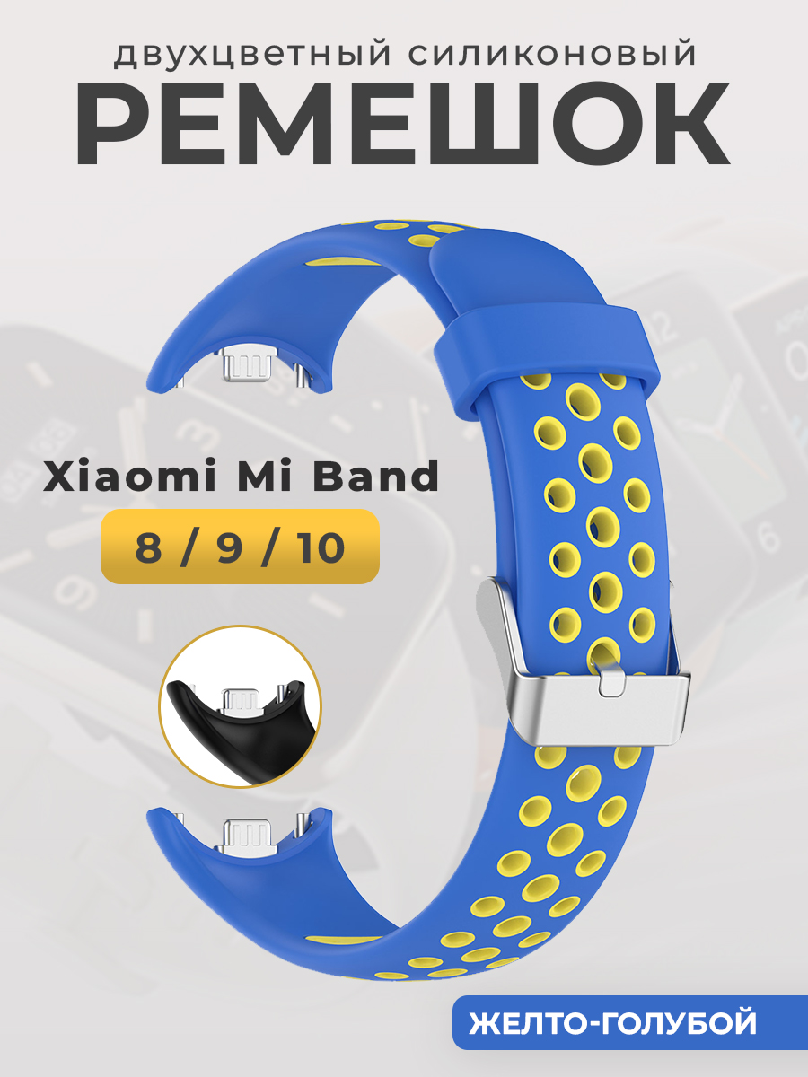 Двухцветный силиконовый ремешок для Xiaomi Mi Band 8/9/10, желто-голубой