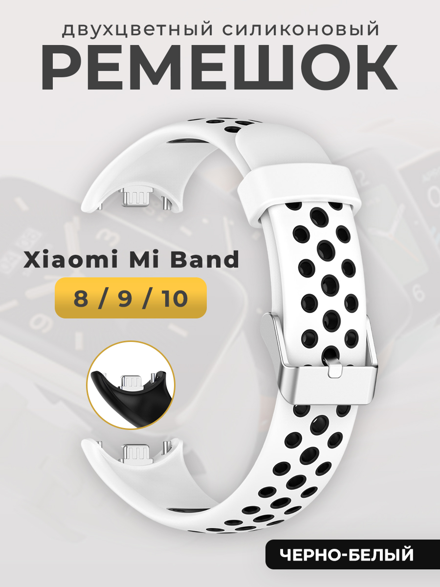 Двухцветный силиконовый ремешок для Xiaomi Mi Band 8/9/10, бело-черный