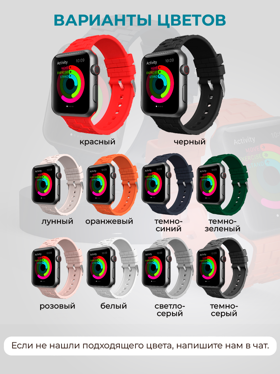 Разработанный для тех, кто ведет активный образ жизни, ремешок силиконовый для apple watch SE (эпл вотч се) идеально подходит для занятий спортом, фитнесом и sport active. Женский ремешок для часов епл ватч представлен в темных и светлых тонах, что позволяет выбрать подходящий вариант для любой ситуации. Широкий ремень на айфон вотч се 45 мм имеет стильный и современный дизайн ремешка с 3D текстурой керпичей.