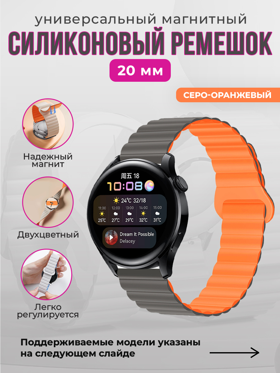 Обратите внимание на наш универсальный магнитный силиконовый ремешок 20 мм, который идеально подойдет для различных моделей смарт-часов. Этот ремешок для смарт часов 20мм создан для того, чтобы обеспечить максимальный комфорт и стиль вашему устройству.