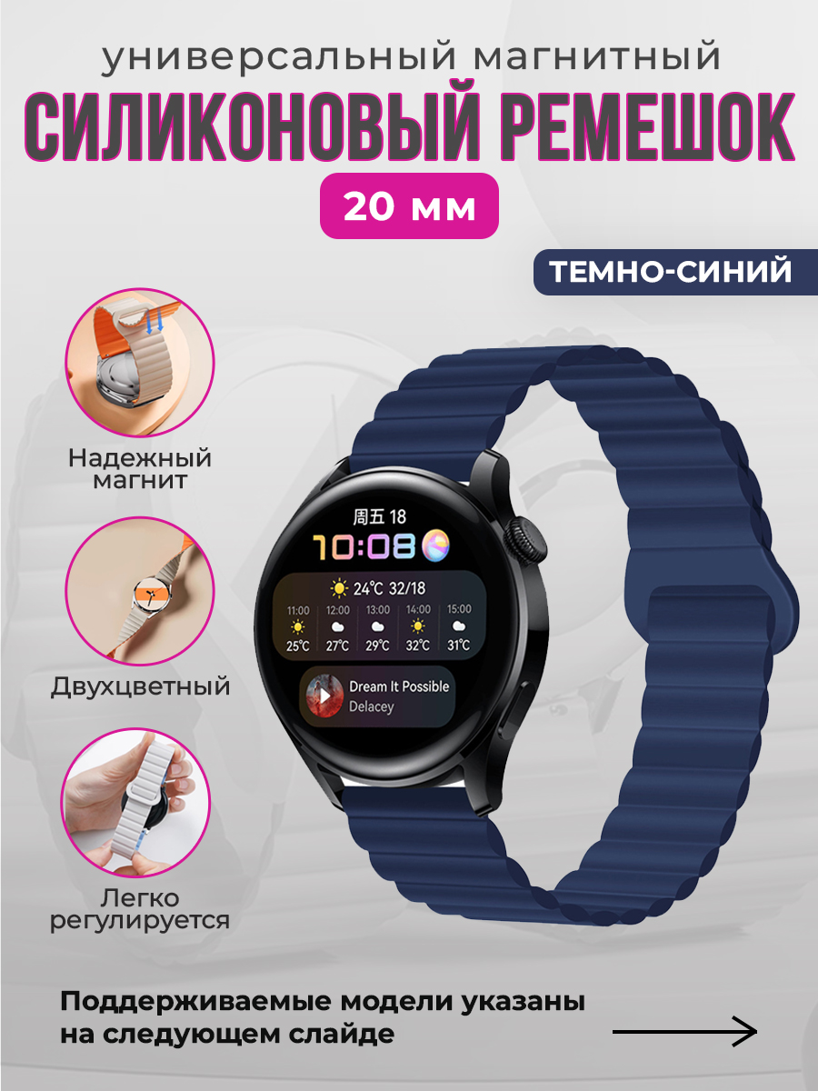 Обратите внимание на наш универсальный магнитный силиконовый ремешок 20 мм, который идеально подойдет для различных моделей смарт-часов. Этот ремешок для смарт часов 20мм создан для того, чтобы обеспечить максимальный комфорт и стиль вашему устройству.