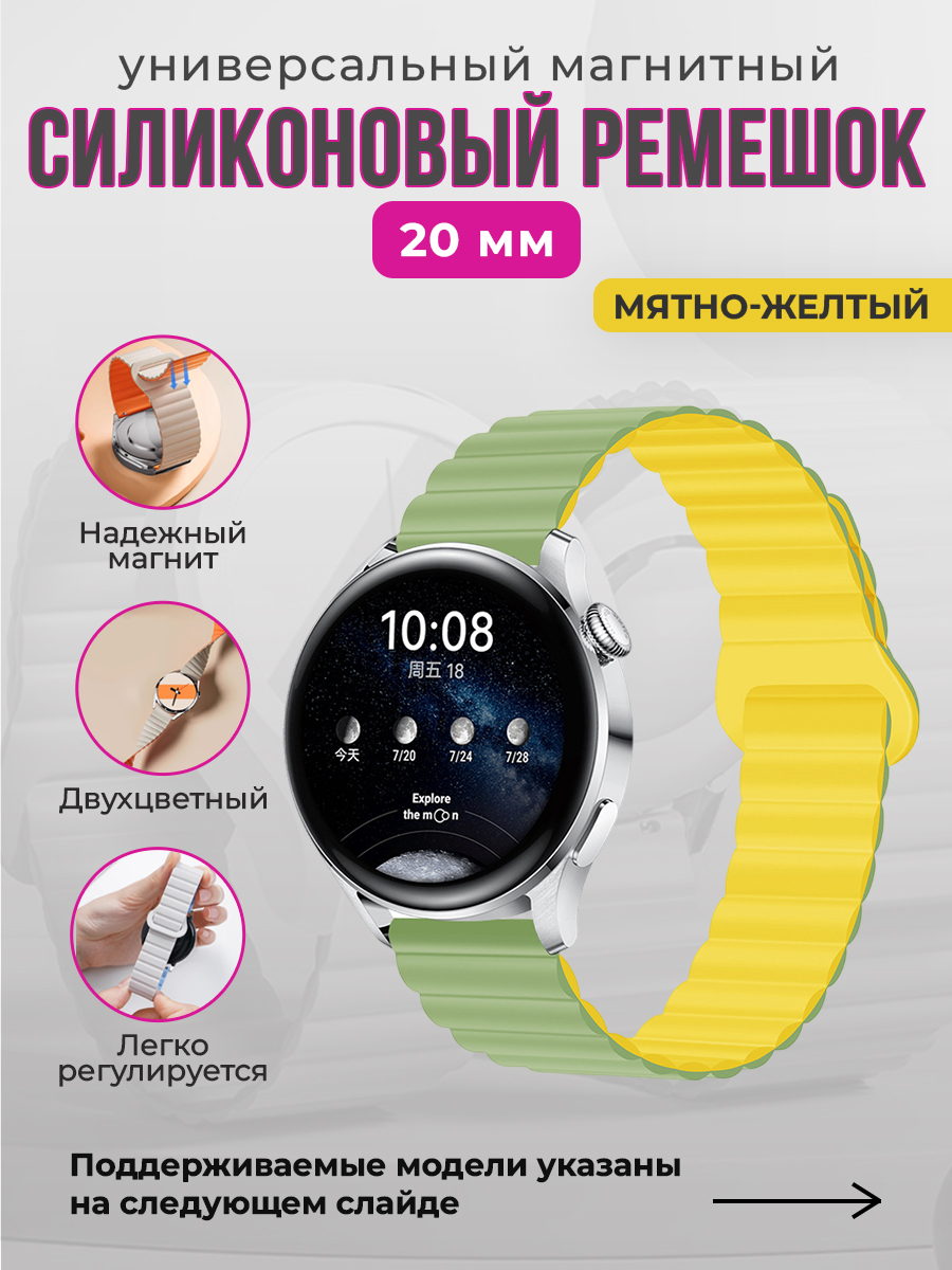Обратите внимание на наш универсальный магнитный силиконовый ремешок 20 мм, который идеально подойдет для различных моделей смарт-часов. Этот ремешок для смарт часов 20мм создан для того, чтобы обеспечить максимальный комфорт и стиль вашему устройству.