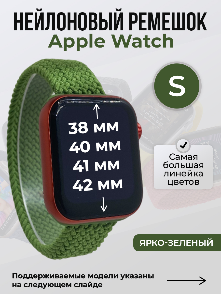 Нейлоновый ремешок для Apple Watch 1-9/SE/SE2/SE3 (38/40/41 мм), 10/11/S10/S11, 42 мм, без застежки, ярко-зеленый, размер S | Выбор покупателей