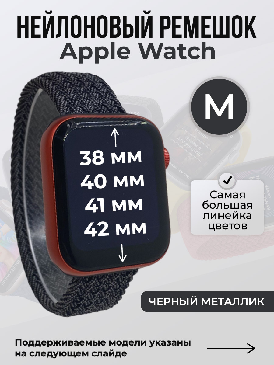 Нейлоновый ремешок для Apple Watch 1-9/SE/SE2/SE3 (38/40/41 мм), 10/11/S10/S11, 42 мм, без застежки, черный металлик, размер M
