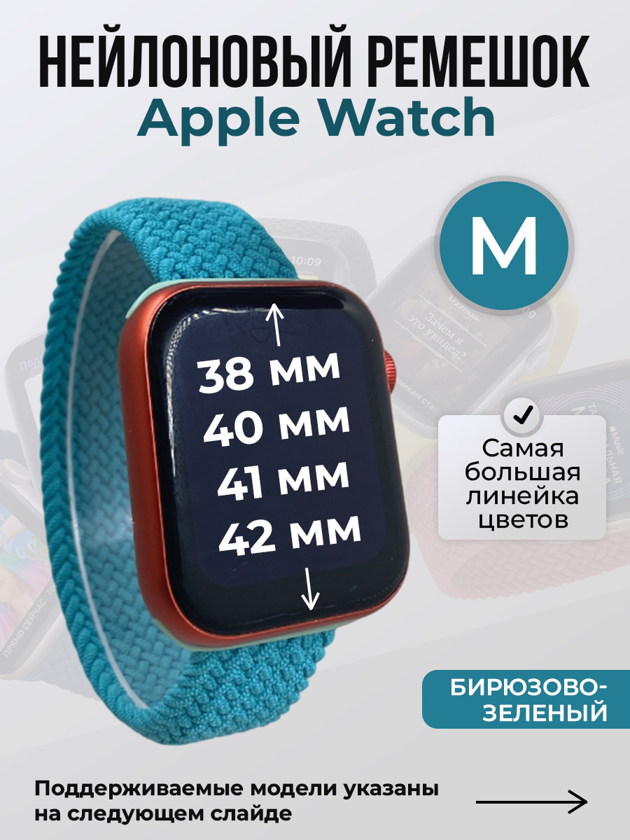 Нейлоновый ремешок для Apple Watch 1-9/SE/SE2/SE3 (38/40/41 мм), 10/11/S10/S11, 42 мм, без застежки, бирюзово-зеленый, размер M
