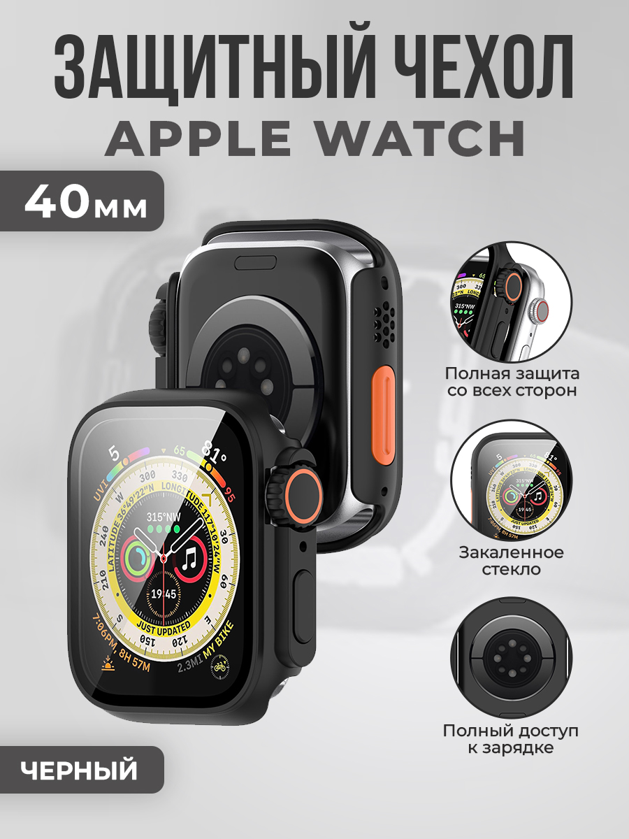 Защитный чехол-стекло для Apple Watch 40 мм, черный