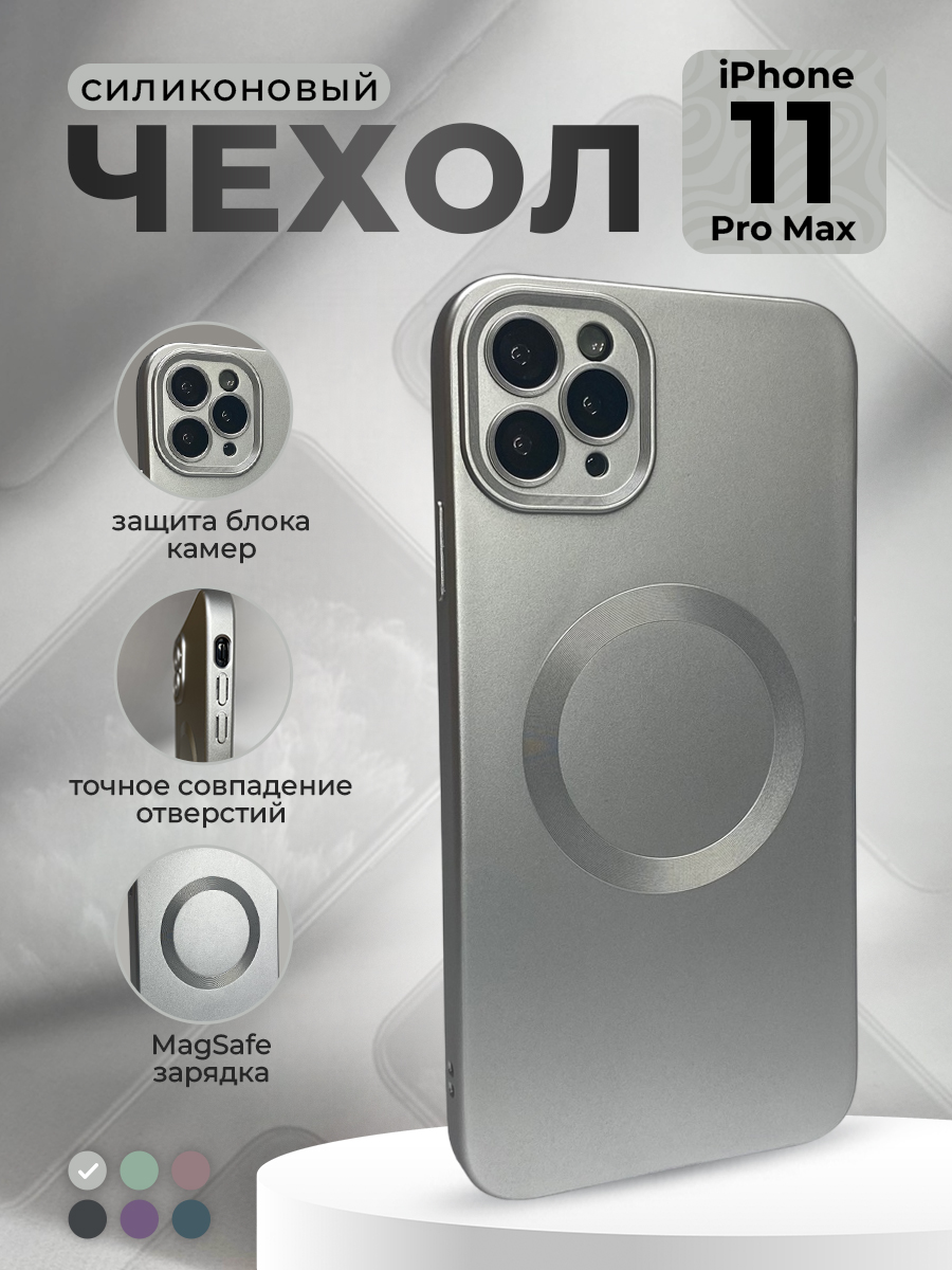 Силиконовый магнитный чехол для iPhone 11 Pro Max, MagSafe, серебристый
