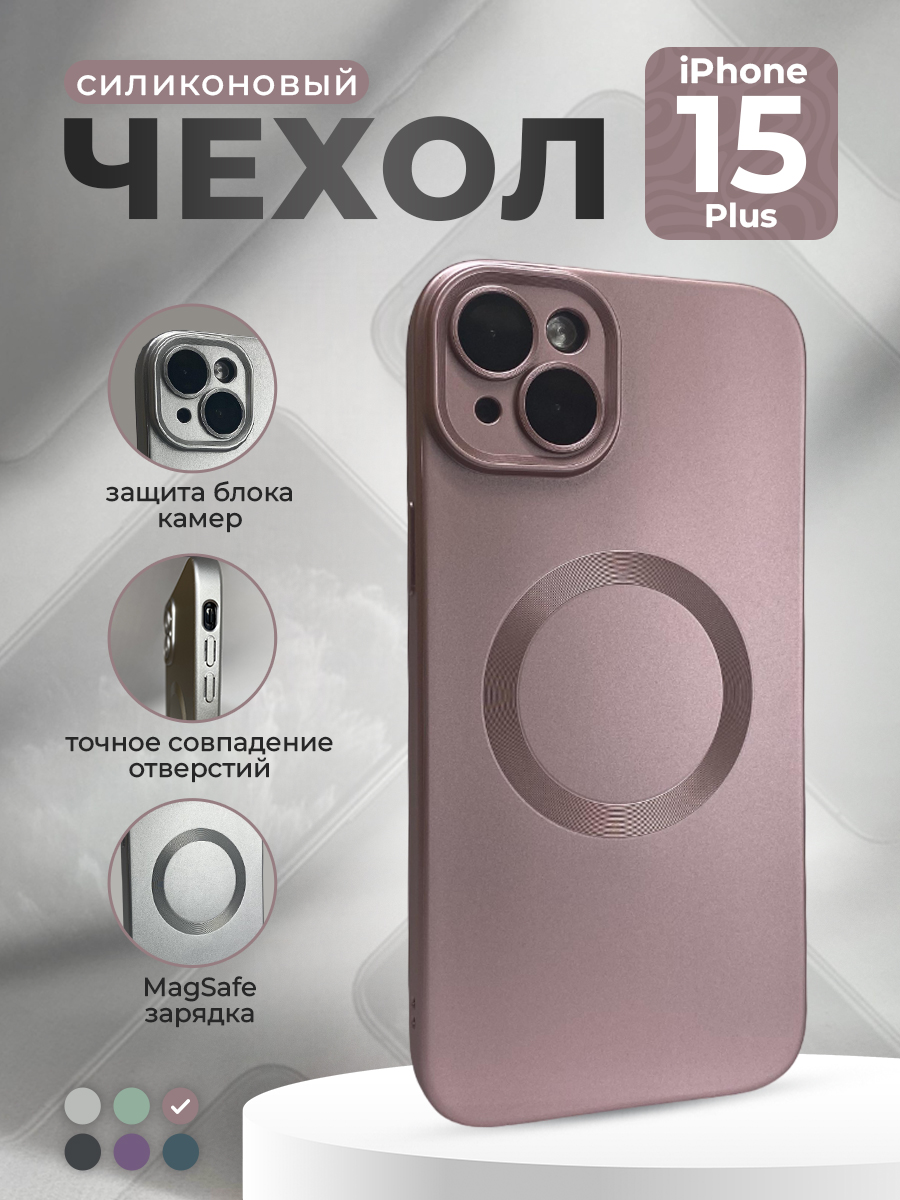 Силиконовый магнитный чехол для iPhone 15 Plus с металлической краской и защитой объектива камеры — идеальный выбор для тех, кто хочет защитить свой смартфон и придать ему стильный вид.