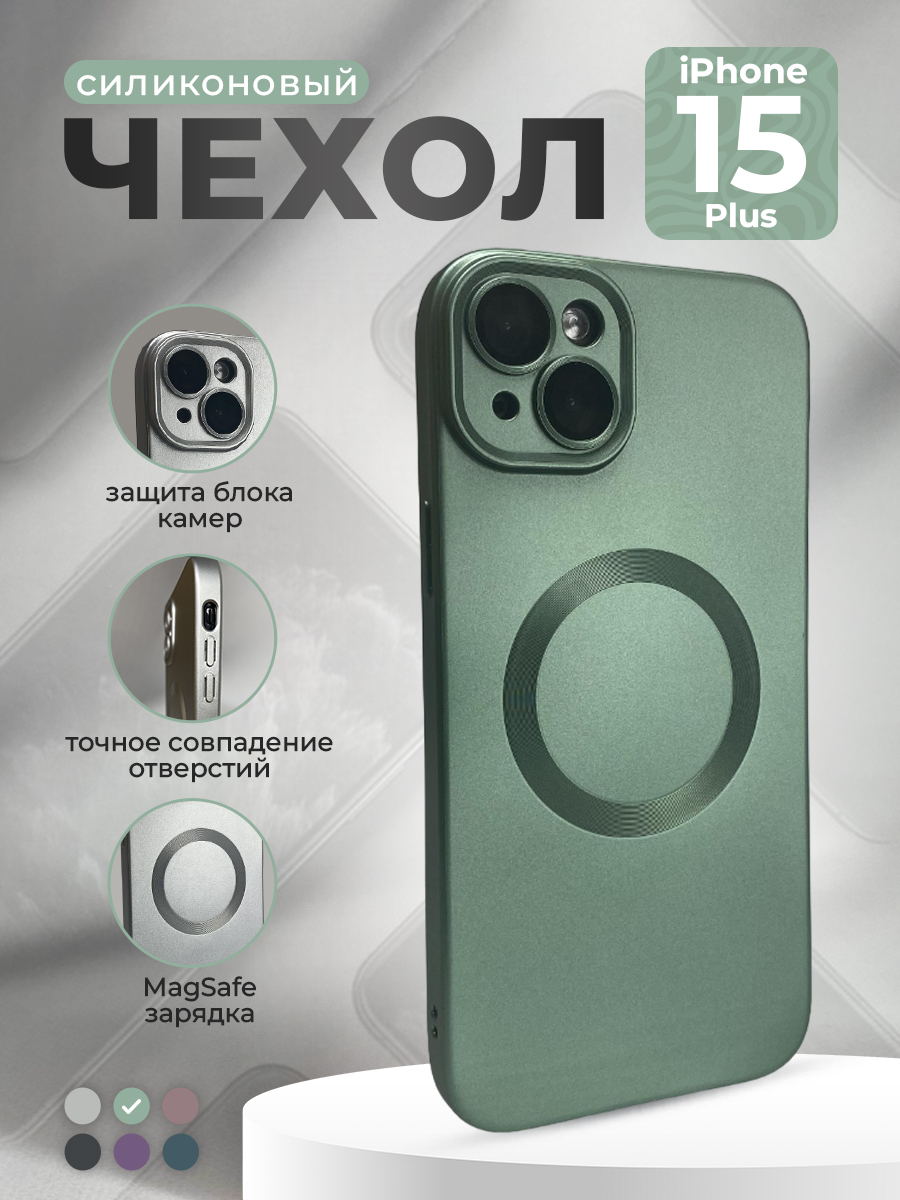 Силиконовый магнитный чехол для iPhone 15 Plus, MagSafe, зеленый