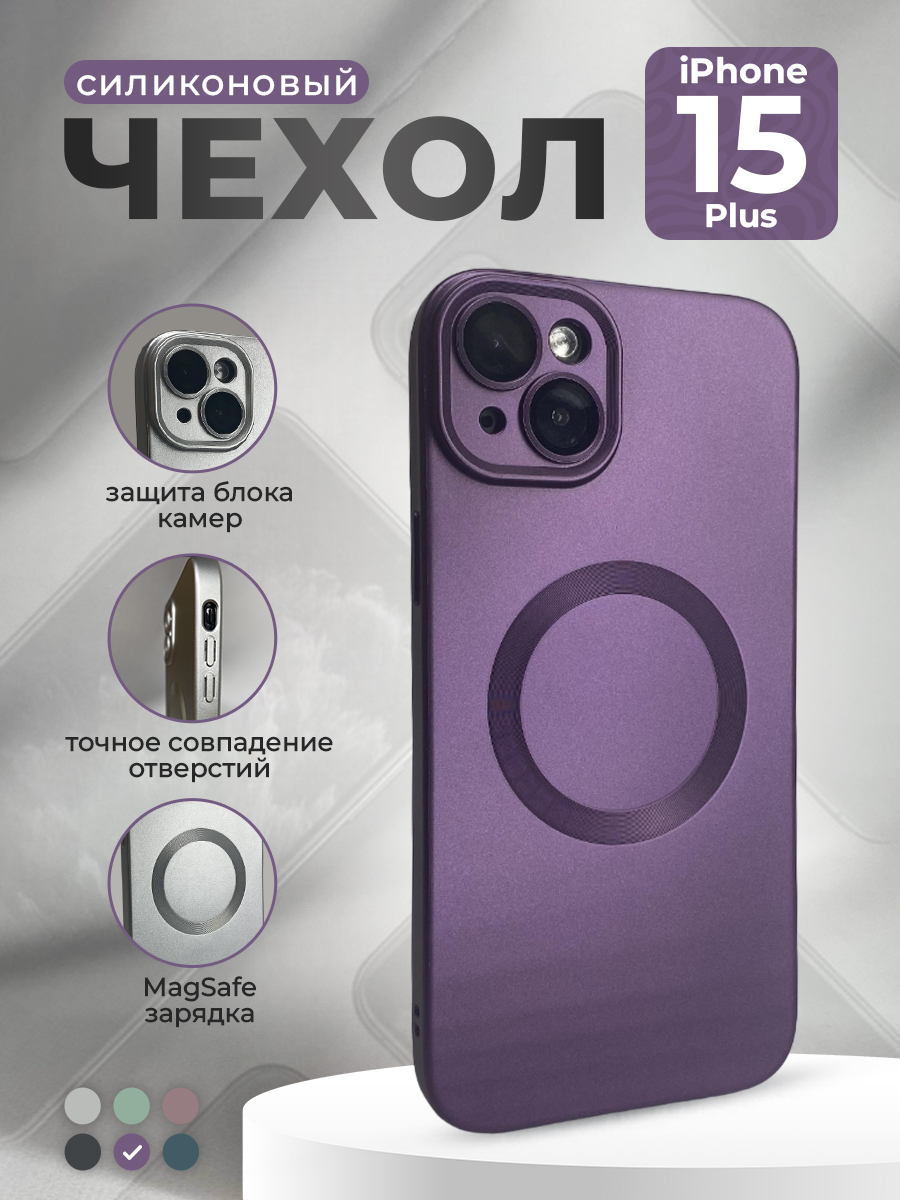 Силиконовый магнитный чехол для iPhone 15 Plus с металлической краской и защитой объектива камеры — идеальный выбор для тех, кто хочет защитить свой смартфон и придать ему стильный вид.
