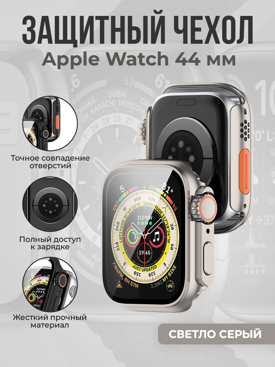 Защитный чехол для Apple Watch 44 мм, светло серый