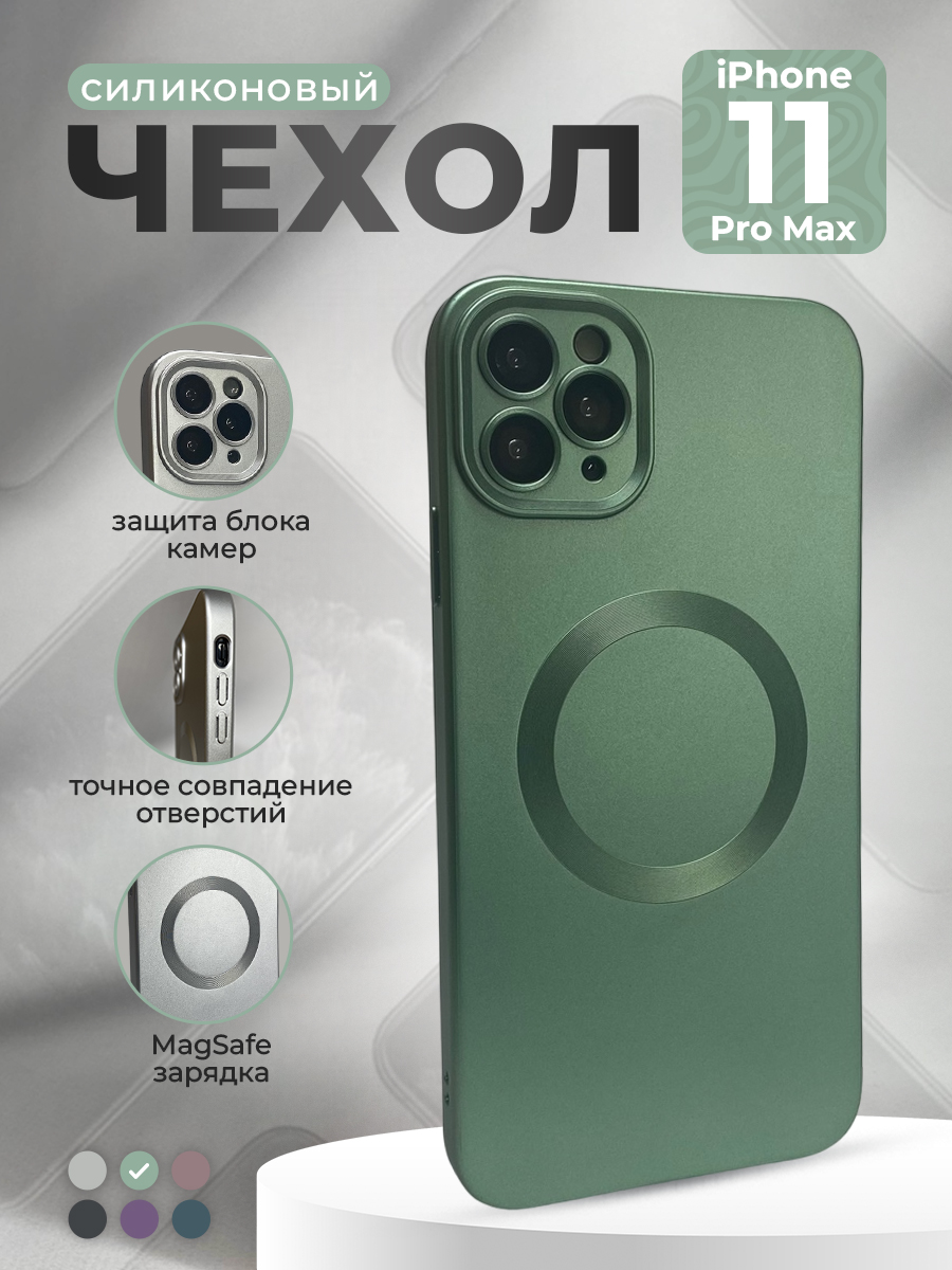 Силиконовый магнитный чехол для iPhone 11 Pro Max, MagSafe, зеленый