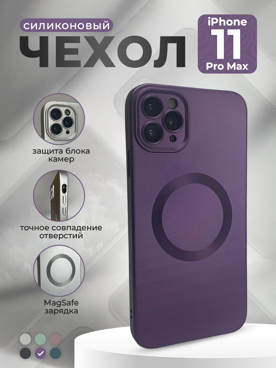 Силиконовый магнитный чехол для iPhone 11 Pro Max, MagSafe, фиолетовый