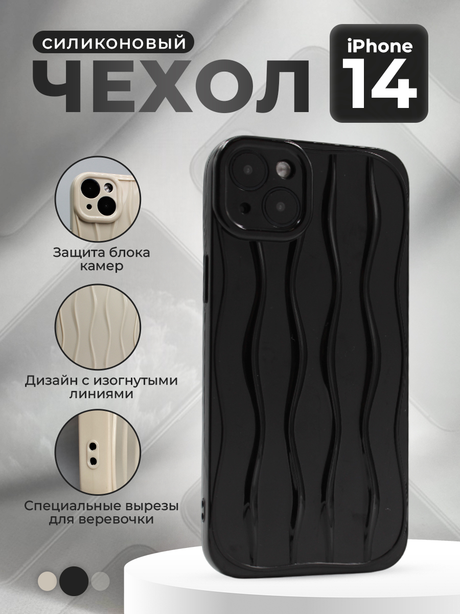 Силиконовый чехол для iPhone 14, с изогнутыми линиями, черный