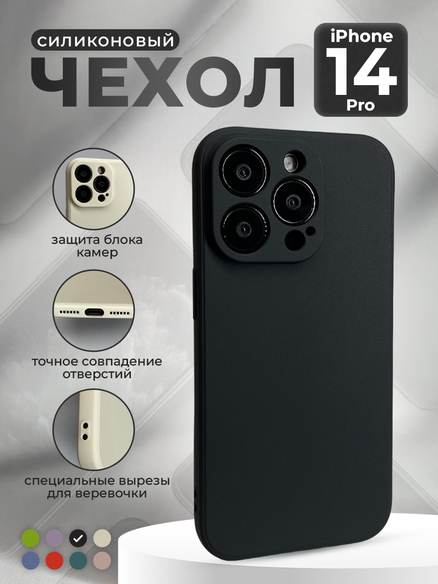 Силиконовый защитный чехол для iPhone 14 Pro, черный