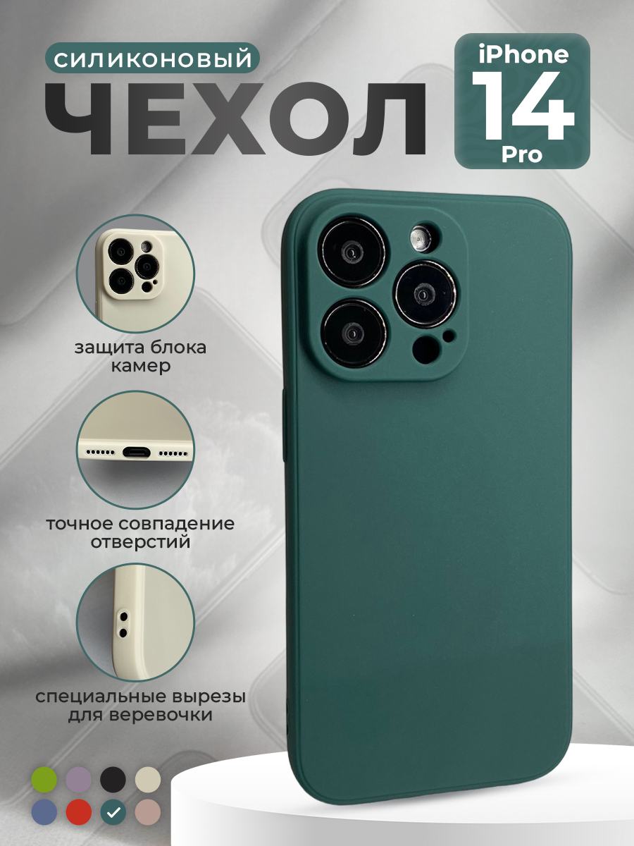 Силиконовый защитный чехол для iPhone 14 Pro, темно-зеленый