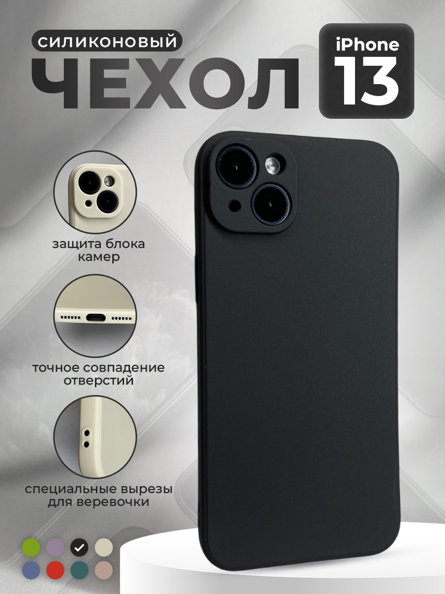Силиконовый защитный чехол для iPhone 13, черный