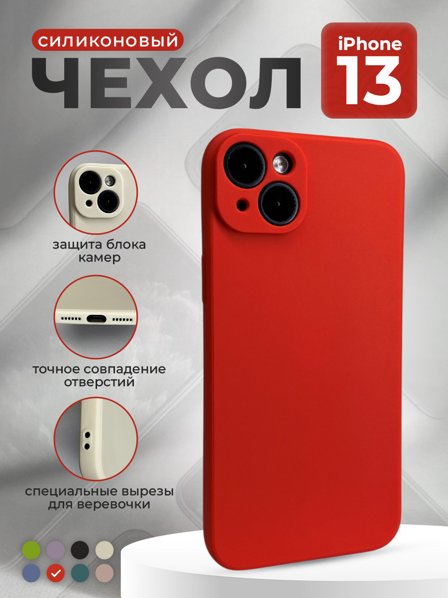 Силиконовый защитный чехол для iPhone 13, красный