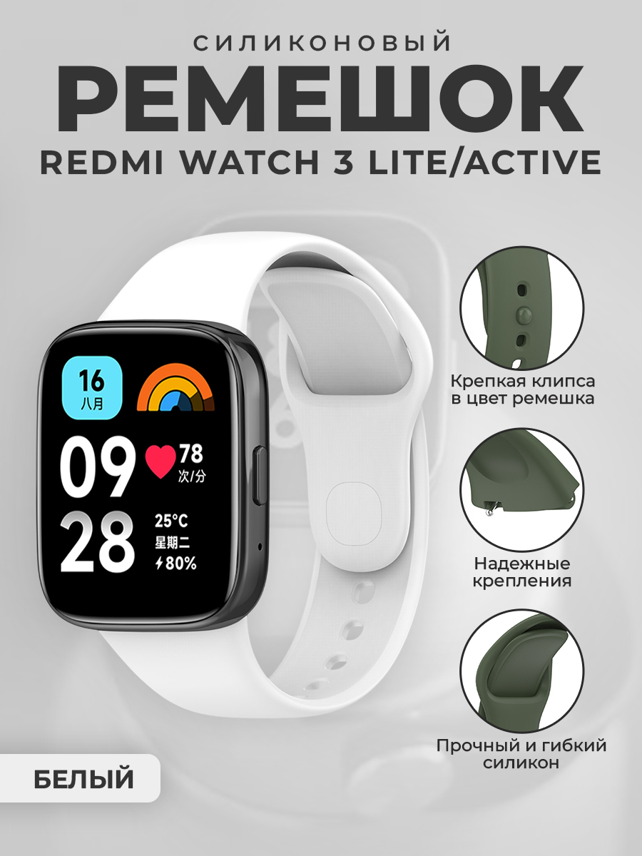 Силиконовый ремешок для Redmi Watch 3 Lite, Redmi Watch 3 Active, белый