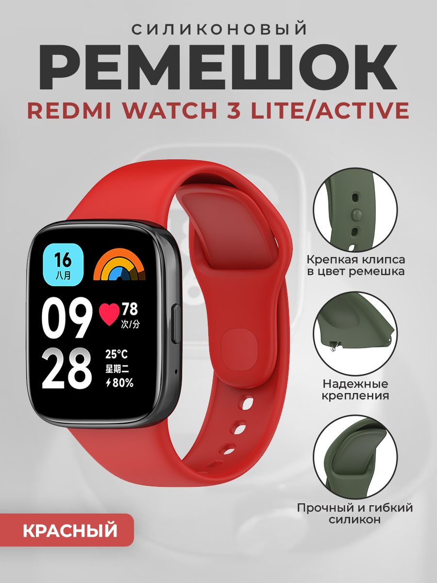 Силиконовый ремешок для Redmi Watch 3 Lite, Redmi Watch 3 Active, красный