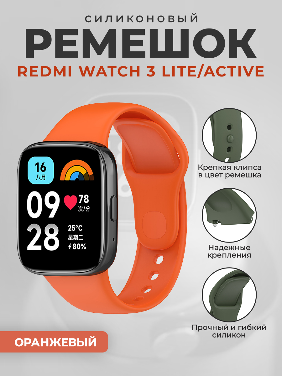 Силиконовый ремешок для Redmi Watch 3 Lite, Redmi Watch 3 Active, оранжевый