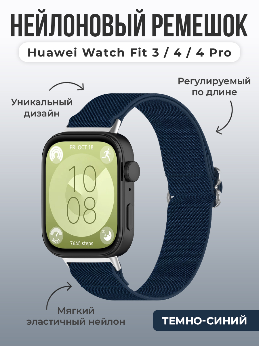 Нейлоновый ремешок для Huawei Watch Fit 3/4/4 Pro, регулируемый по длине, темно-синий
