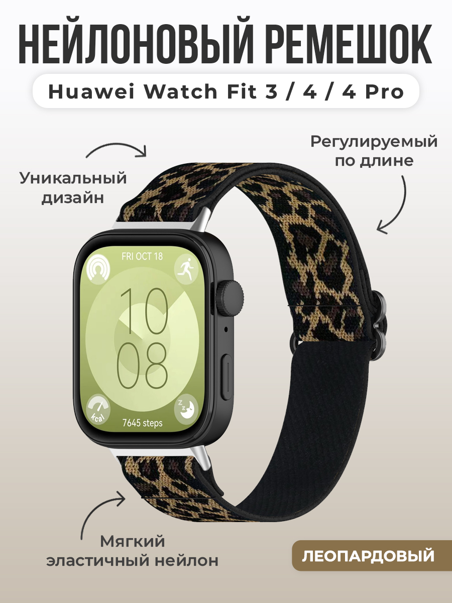 Нейлоновый ремешок для Huawei Watch Fit 3/4/4 Pro, регулируемый по длине, леопардовый