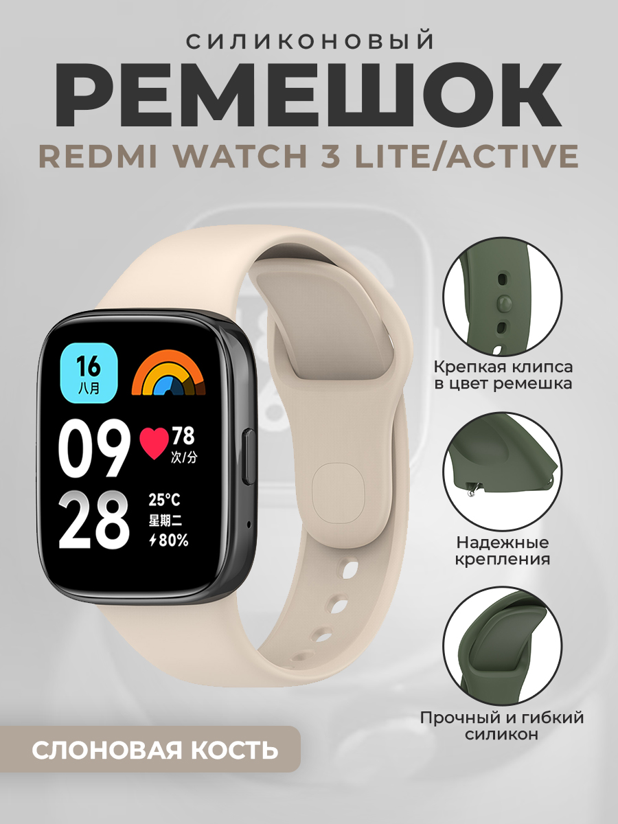 Силиконовый ремешок для Redmi Watch 3 Lite, Redmi Watch 3 Active, слоновая кость