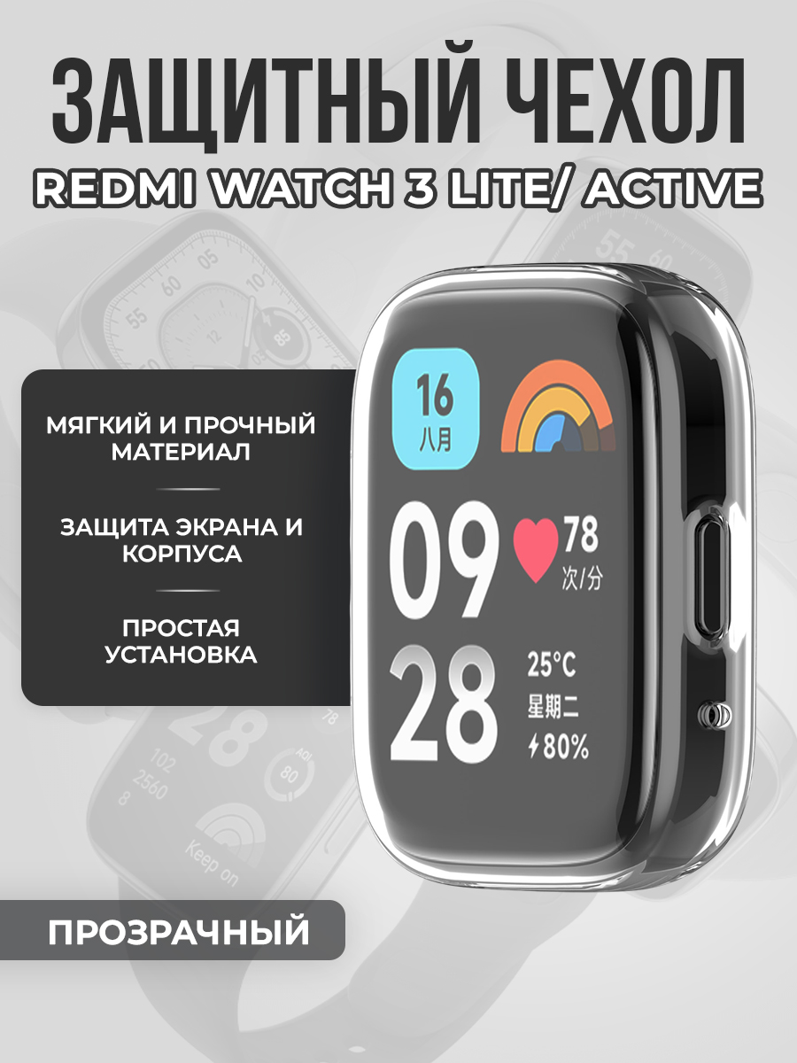 Защитный чехол для Redmi Watch 3 Lite, Watch 3 Active, прозрачный
