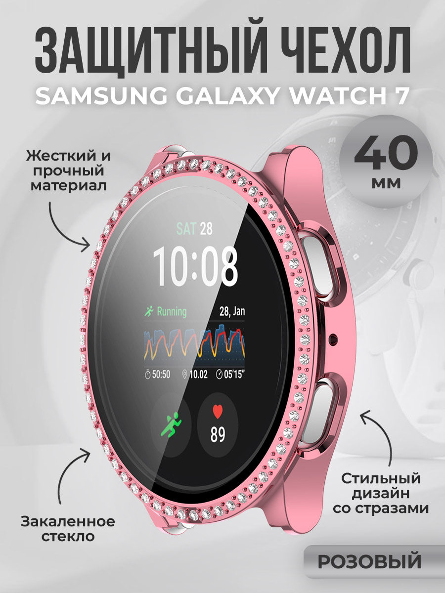 Защитный чехол со стразами для Samsung Galaxy Watch 7, 40 мм, розовый