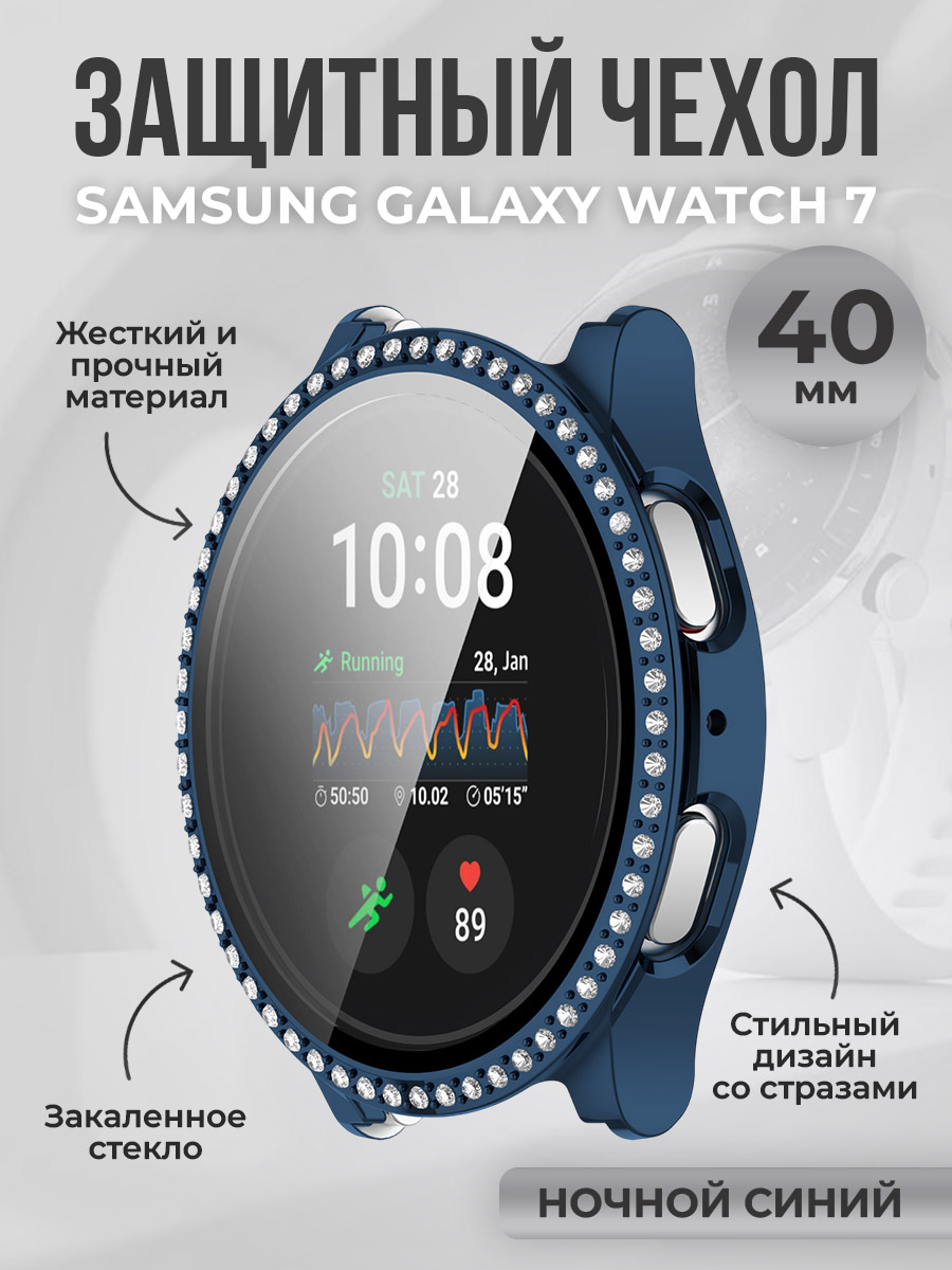 Защитный чехол со стразами для Samsung Galaxy Watch 7, 40 мм, ночной синий