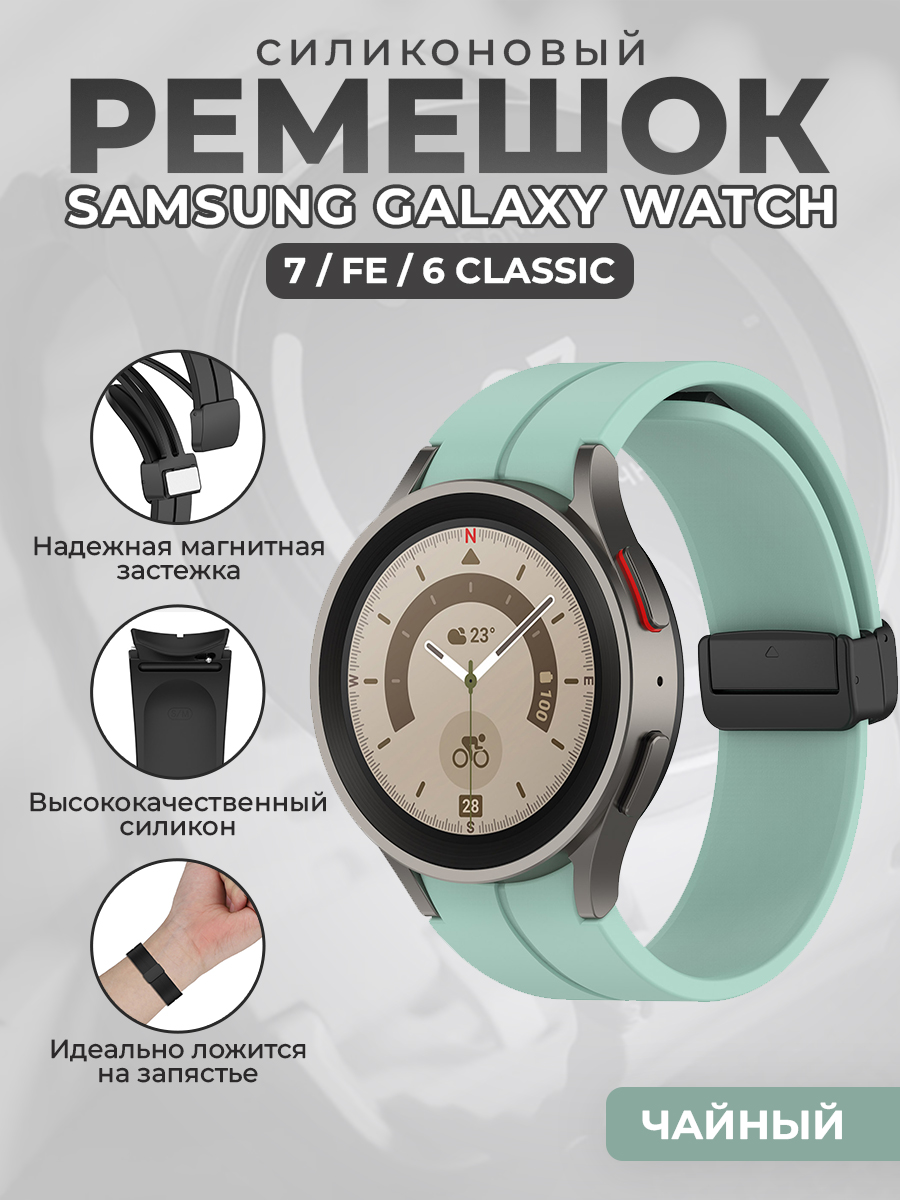 Этот ремешок для Galaxy Watch FE выполнен из гипоаллергенного силикона, что гарантирует комфорт даже при длительном ношении. Ремешок samsung watch 7 позволяет вам выделяться благодаря стильному однотонному дизайну, который идеально сочетается с любым нарядом. Уникальным элементом этого аксессуара является прочная застежка на магните, обеспечивающая надежную фиксацию и простоту в использовании.