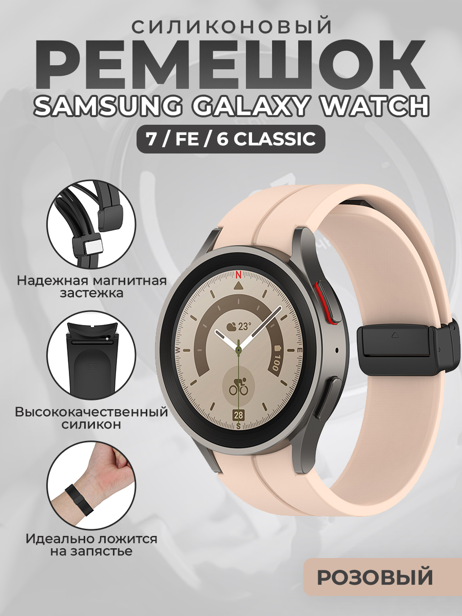 Силиконовый ремешок для Samsung Galaxy Watch 7 / FE / 6 Classic, с черной магнитной застежкой, розовый