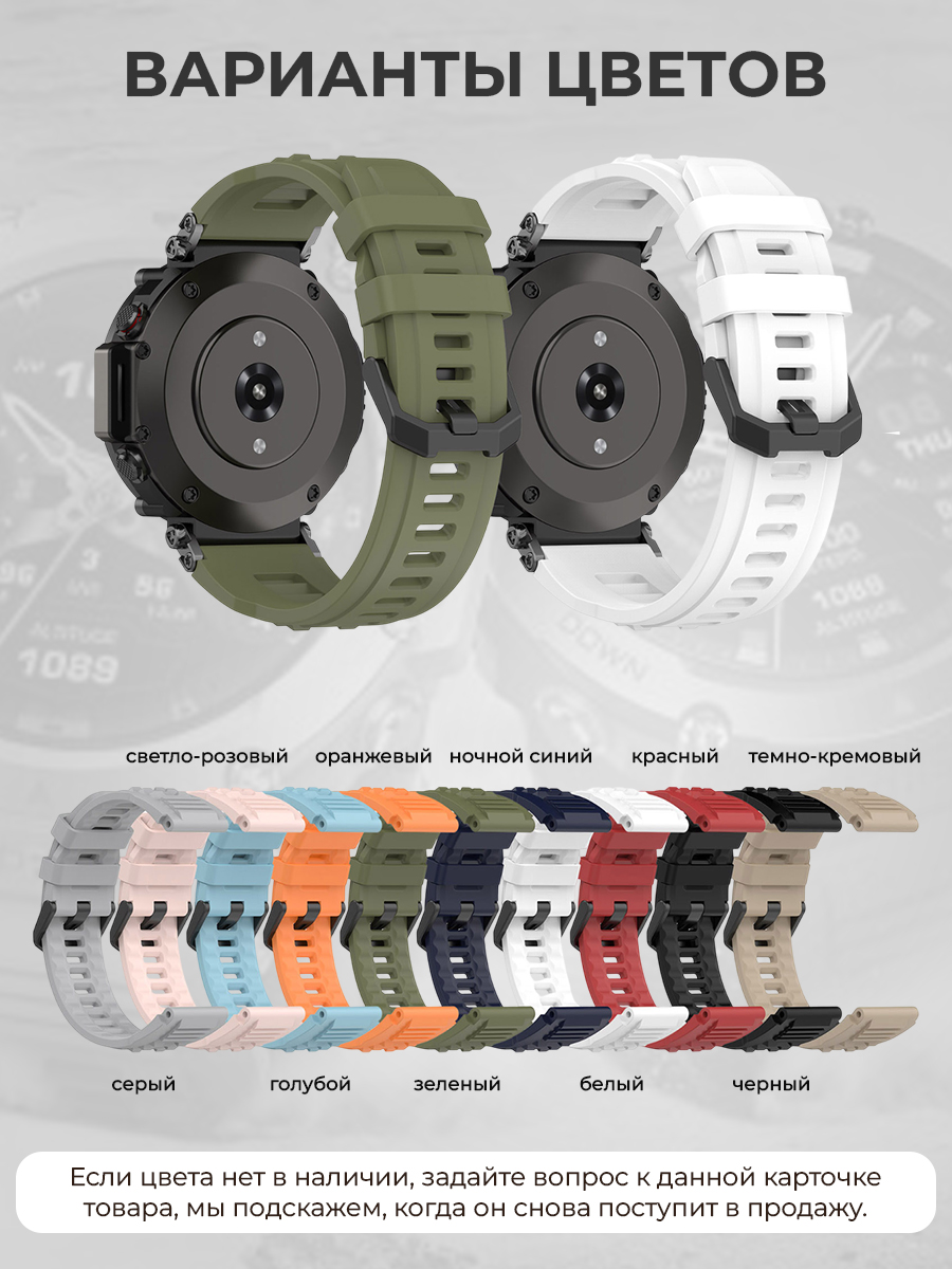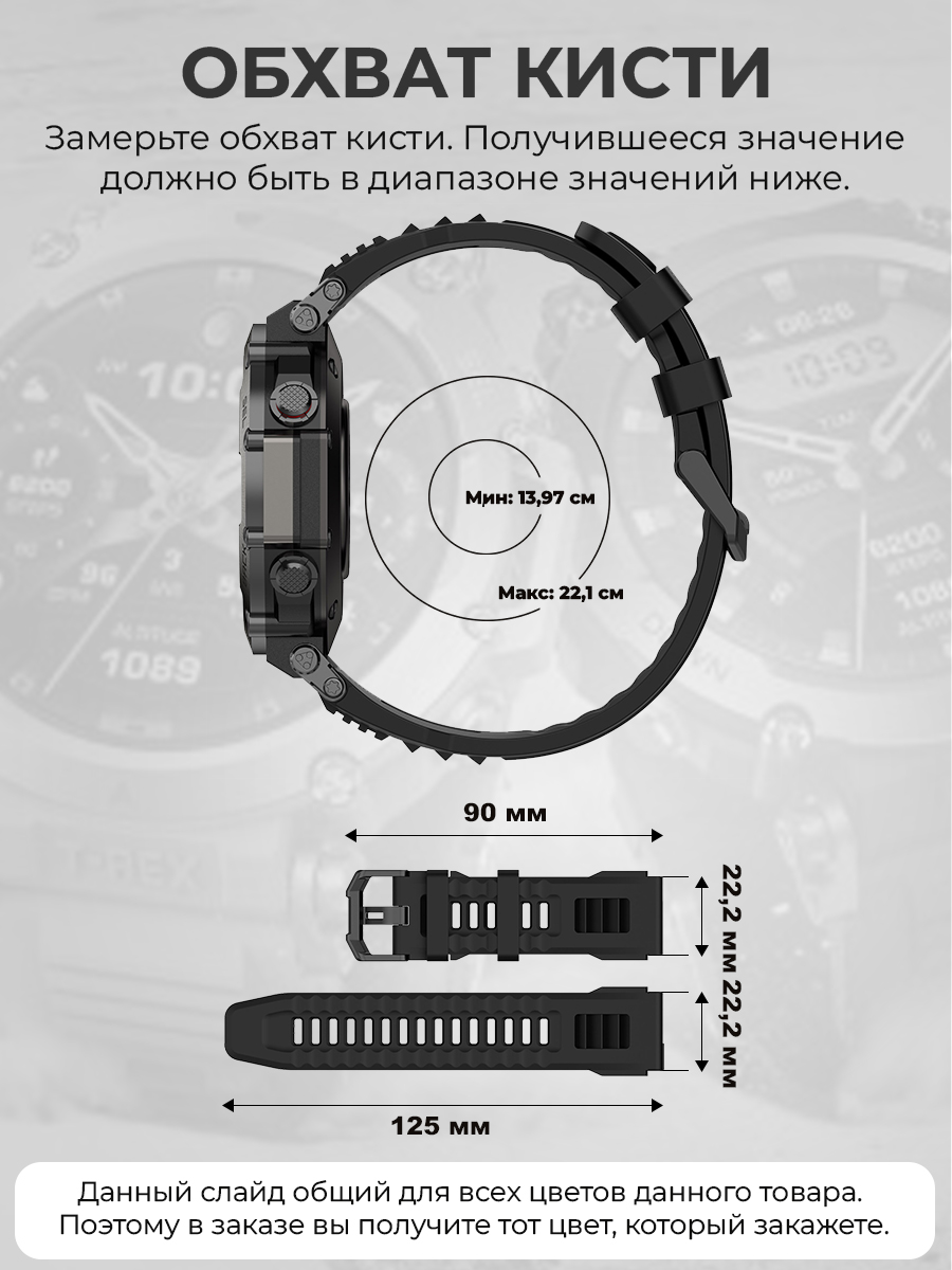 Не упустите возможность обновить свой гаджет с помощью нашего стильного и функционального силиконового ремешка для Амазфит Т-Рекс Ультра. Придайте вашему Amazfit T-Rex новый вид и выразите свою индивидуальность, выбрав надежный и комфортный аксессуар, который поможет вам в повседневной жизни и спорт!
