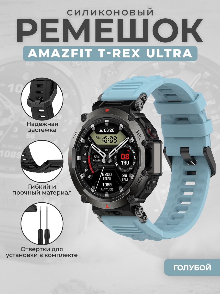 Силиконовый ремешок для Amazfit T-Rex Ultra, голубой