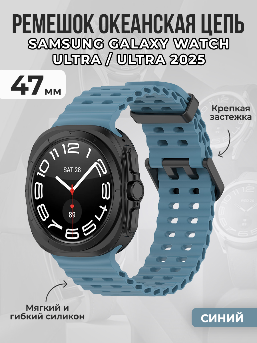 Представляем вашему вниманию ремешок океанская цепь для Samsung Galaxy Watch Ultra / Samsung Galaxy Watch Ultra 2025, 47 мм — идеальное сочетание стиля и функциональности для ваших смарт-часов. Этот Samsung Galaxy Watch Ultra ремешок выполнен из высококачественного гипоаллергенного силикона, что делает ремешок Самсунг Гелакси Вочт Ультра 47 мм безопасным и комфортным для повседневного ношения. Ремешок Samsung Galaxy Watch Ultra про идеально подходит для ежедневного использования, занятия спортом, фитнесом и sport active или повседневной носки.