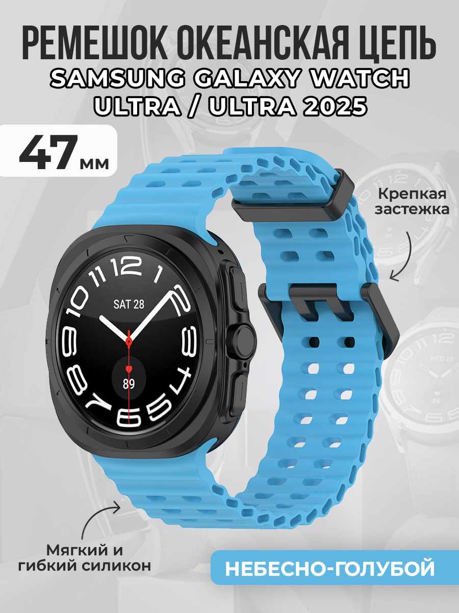 Представляем вашему вниманию ремешок океанская цепь для Samsung Galaxy Watch Ultra / Samsung Galaxy Watch Ultra 2025, 47 мм — идеальное сочетание стиля и функциональности для ваших смарт-часов. Этот Samsung Galaxy Watch Ultra ремешок выполнен из высококачественного гипоаллергенного силикона, что делает ремешок Самсунг Гелакси Вочт Ультра 47 мм безопасным и комфортным для повседневного ношения. Ремешок Samsung Galaxy Watch Ultra про идеально подходит для ежедневного использования, занятия спортом, фитнесом и sport active или повседневной носки.
