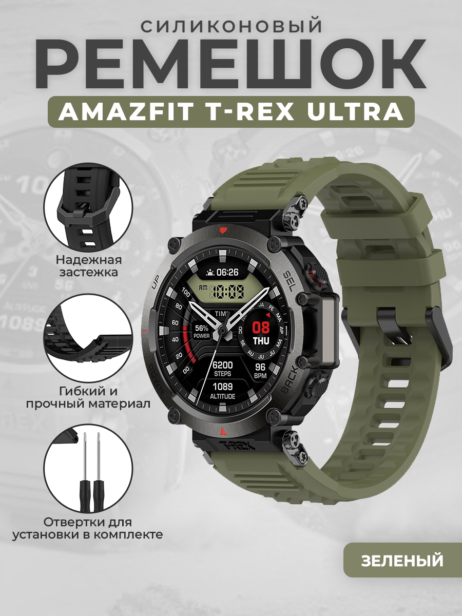 Силиконовый ремешок для Amazfit T-Rex Ultra, зеленый