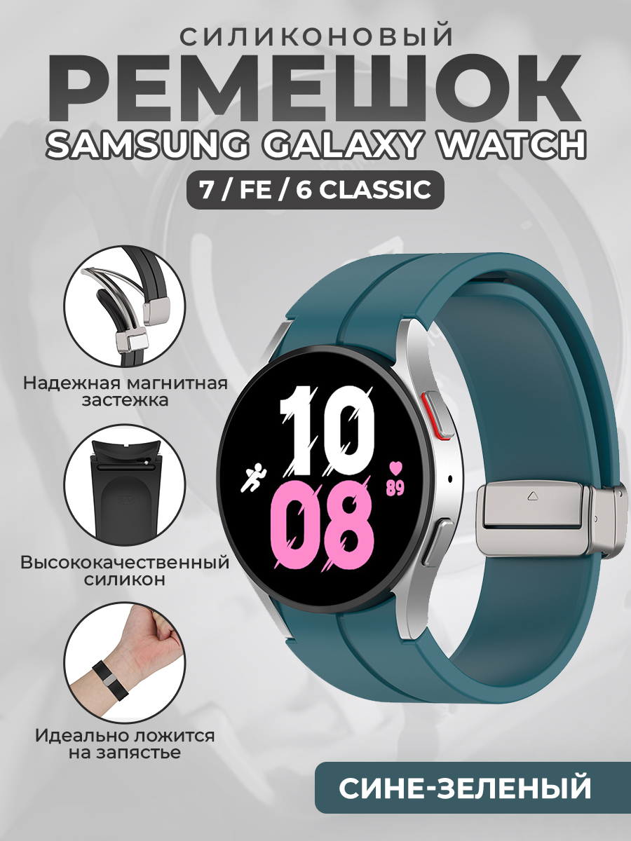 Силиконовый ремешок для Samsung Galaxy Watch 7 / FE / 6 Classic, с серебристой магнитной застежкой, сине-зеленый