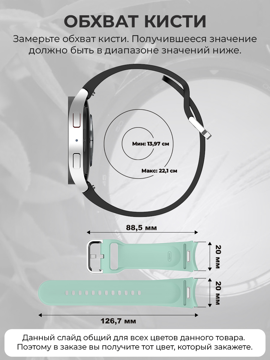 Ремешок для Samsung Galaxy Watch 6 Classic регулируется по длине под ширину запястья мужского и женского. Ремешок для Самсунг Гелакс Вотч 5 Про подходит для обхвата запястья, обеспечивая комфортную и безопасную посадку. Браслет на Samsung Galaxy Watch 4 Classic позволяет вам не только наслаждаться стильным внешним видом, но и быть уверенным в его прочности и надежности.