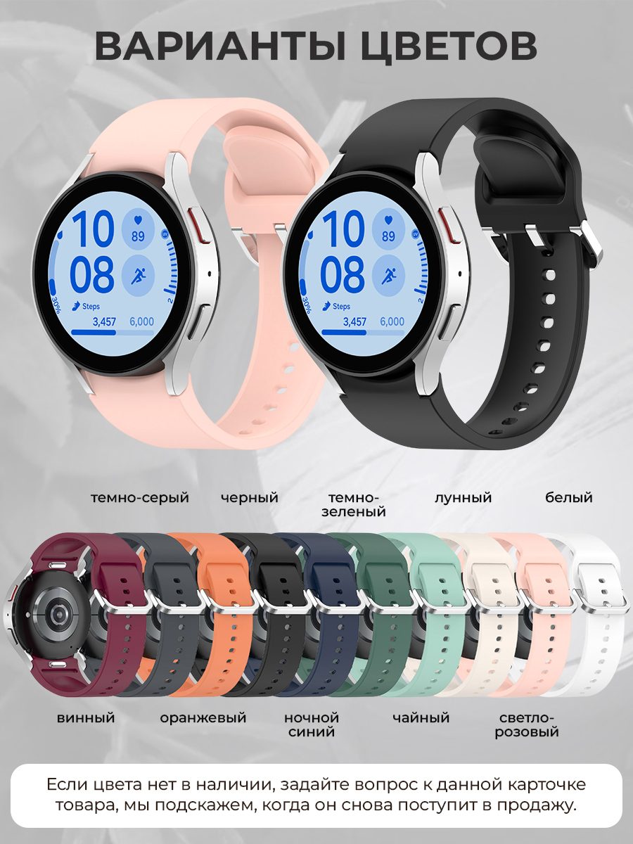 Силиконовый ремешок для Samsung Galaxy Watch 7 / FE / 6 Classic — это идеальное решение для тех, кто ищет сочетание стилевого разнообразия и практичности в аксессуарах для своих умных часов. Идеально подходходит для моделей Samsung Galaxy Watch 7, Samsung Galaxy Watch FE, Samsung Galaxy Watch 6, Samsung Galaxy Watch 6 Classic, а также Samsung Galaxy Watch 5, Samsung Galaxy Watch 5 Pro, Samsung Galaxy Watch 4 и Samsung Galaxy Watch 4 Classic.