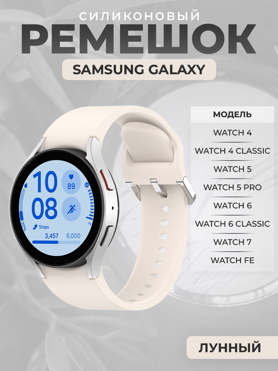 Силиконовый ремешок для Samsung Galaxy Watch 7 / FE / 6 Classic, с серебристой застежкой, лунный