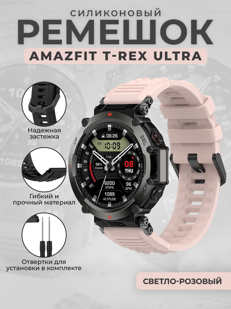 Силиконовый ремешок для Amazfit T-Rex Ultra, светло-розовый