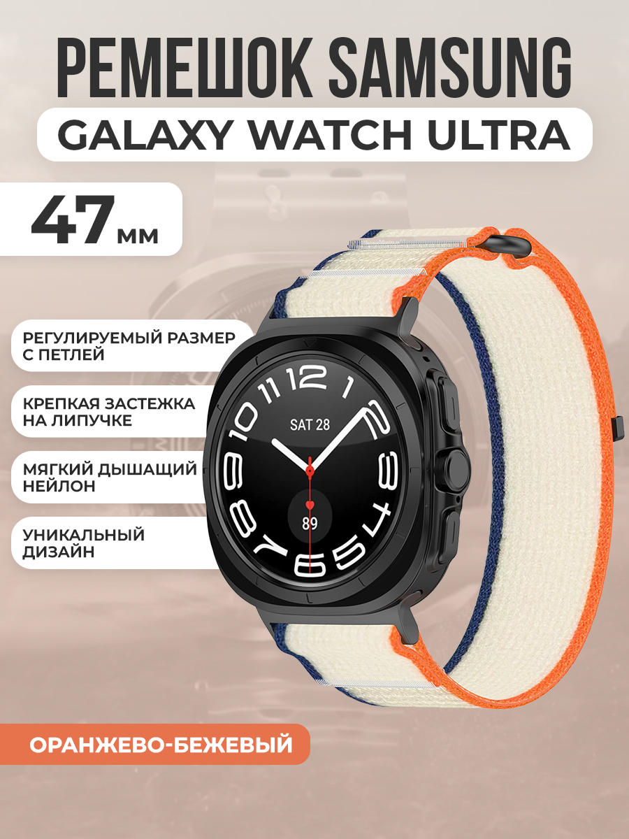 Нейлоновый ремешок на липучке для Samsung Galaxy Watch Ultra, 47 мм, оранжево-бежевый