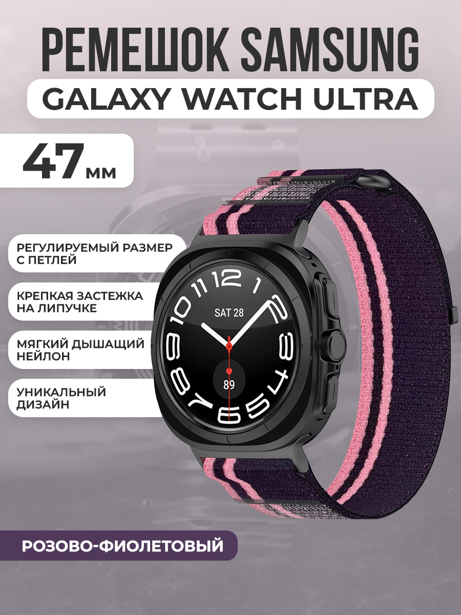Нейлоновый ремешок на липучке для Samsung Galaxy Watch Ultra, 47 мм, розово-фиолетовый