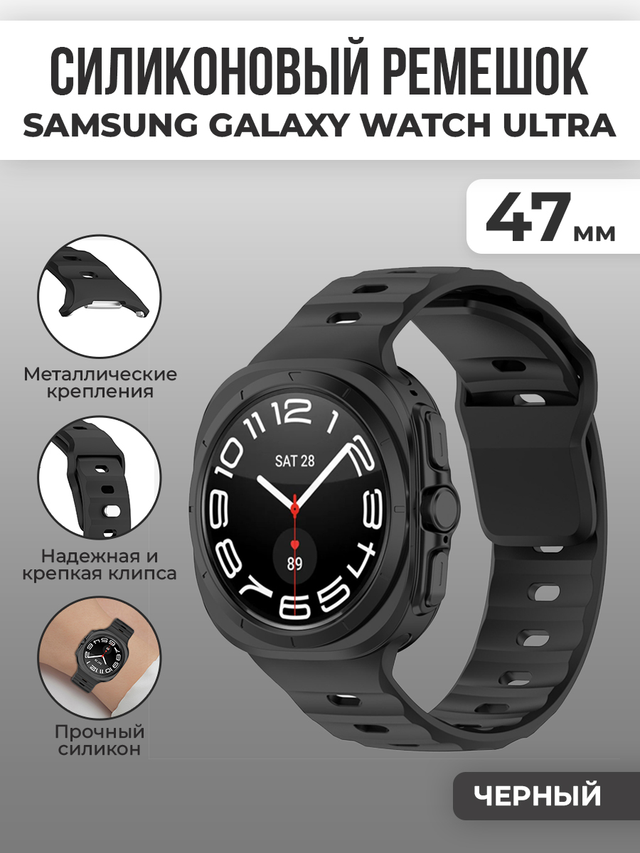 Силиконовый ремешок для Samsung Galaxy Watch Ultra, 47 мм, черный