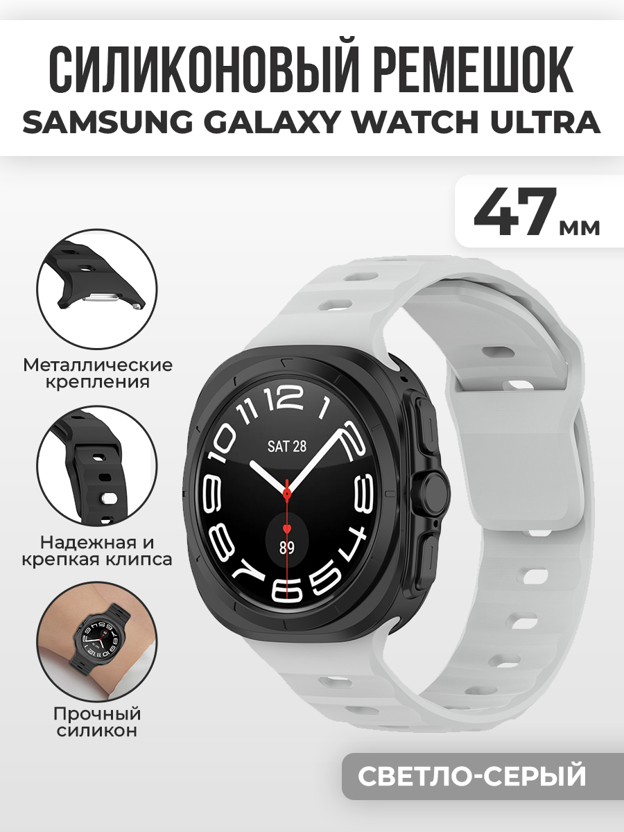 Силиконовый ремешок для Samsung Galaxy Watch Ultra, 47 мм, светло-серый